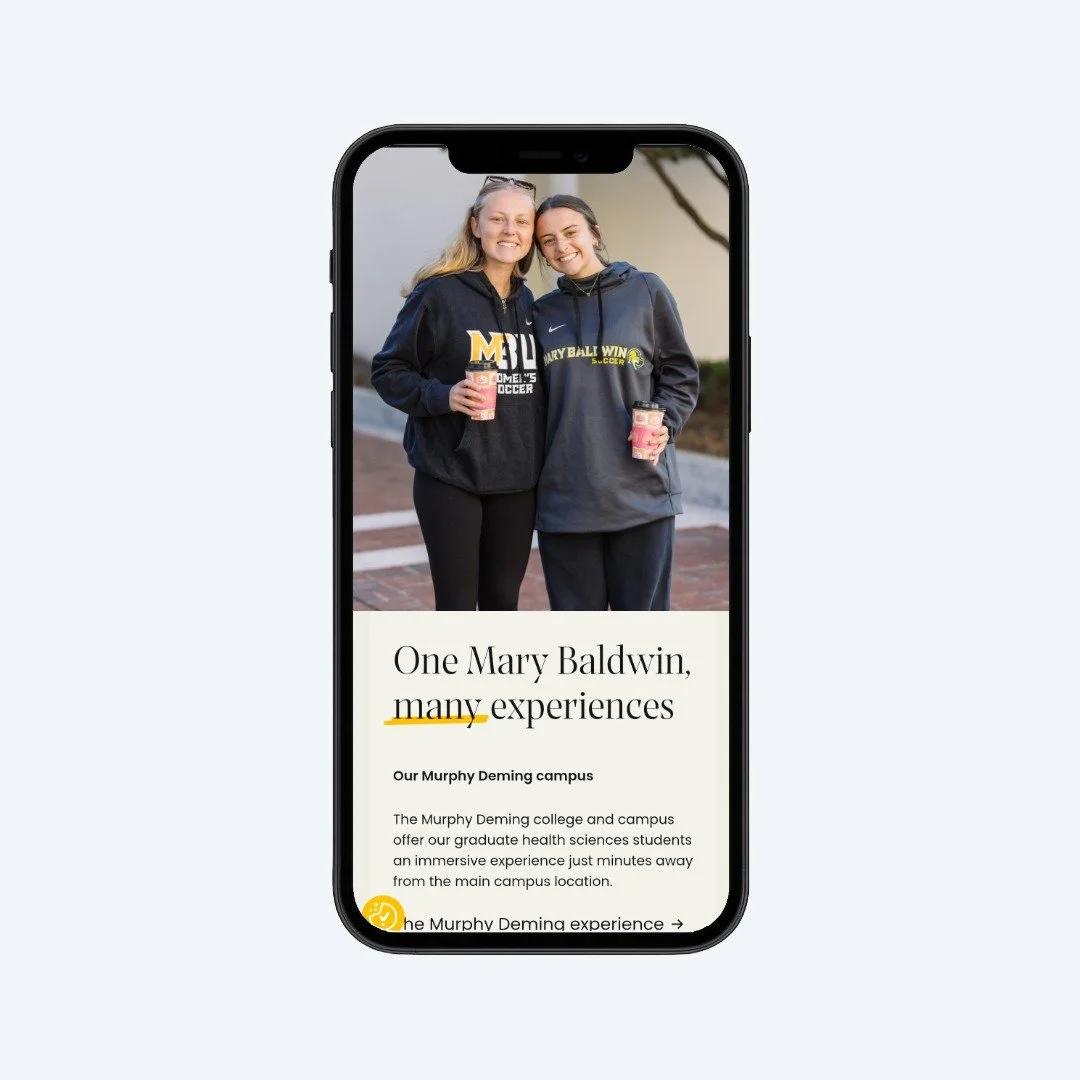 That initiative–Mary Baldwin Signature–marked a pivot away from the school’s online programs towards a renewed focus on on-campus learning. The program was a major priority for MBU’s new president, and we were able to work as an extension of the university’s communications team to offer fast, responsive support.