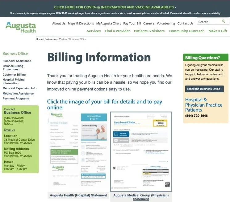 An audit of the Augusta Health site quickly revealed some key issues: